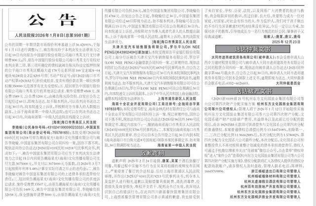 2026年1月8日,《人民法院报》3版刊登了海底捞小便当事人唐某及其父母的道歉声明。 人民法院报电子版截图